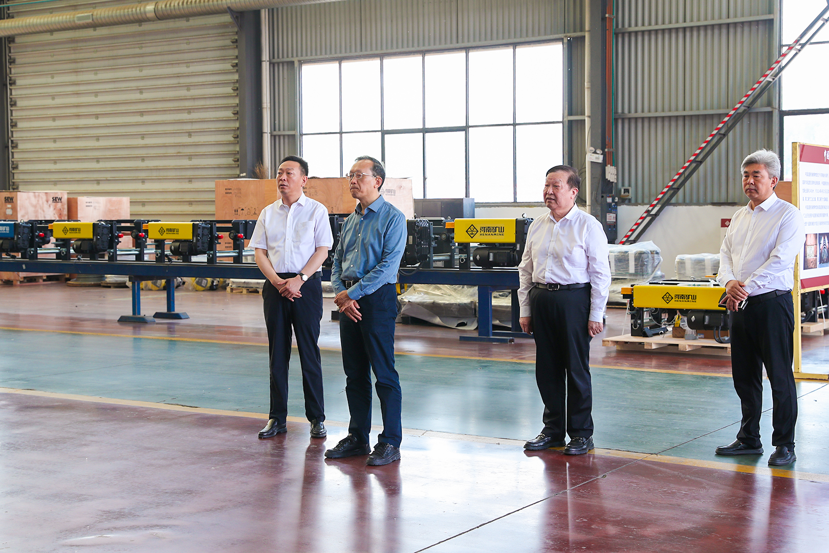 5月13日,河南省副省长李涛一行莅临公司智能产业园调研,现场参观了生产车间和起重机综合性能(寿命)实验室。省直有关部门、新乡市及长垣市有关领导陪同调研。公司总裁魏学明汇报了安全生产、科技创新、起重装备产业链发展等情况。